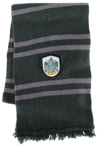 This high quality knit wool scarf in green and grey with a Slytherin Shield patch makes a wonderful gift. This is an officially licensed Harry Potter product.